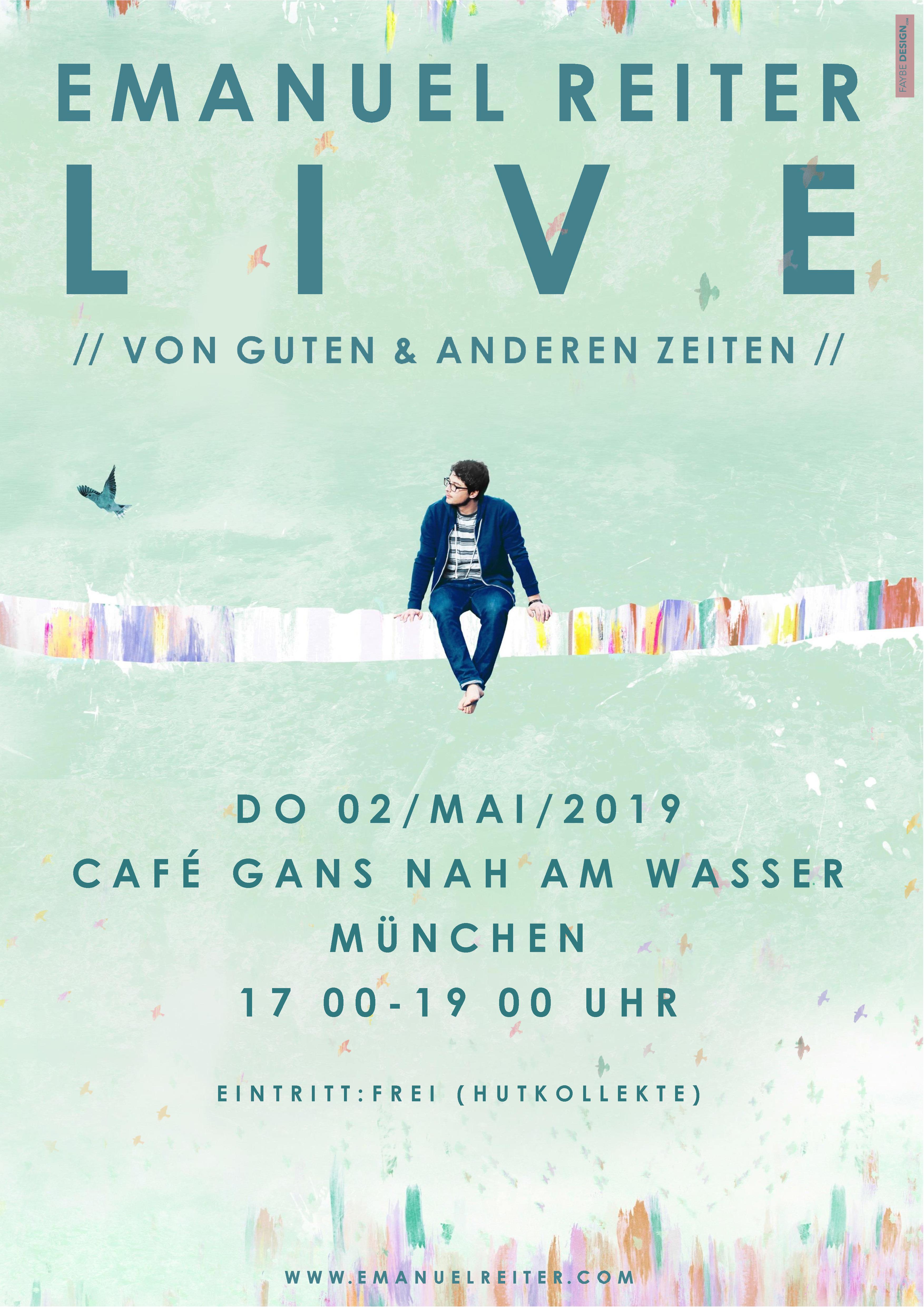 München (DE) Beitragsautor Von Emanuel Beitragsdatum 27. April 2019 Do. 02Mai2019 17 00 bis 18 00Café Ganz nah am WasserSiegenburger Str. 41, 81373 Münchenhttps://www.gansamwasser.de/Eintritt: Eintritt frei (Hutkollekte) ← AMRISWIL (CH) – MIT SINA → SCHAFFHAUSEN (CH) – HOLLYWOOD AM RHEIN